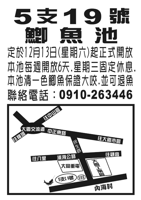 昨天晚上接獲 該池醜人兄 說要我找人過去釣